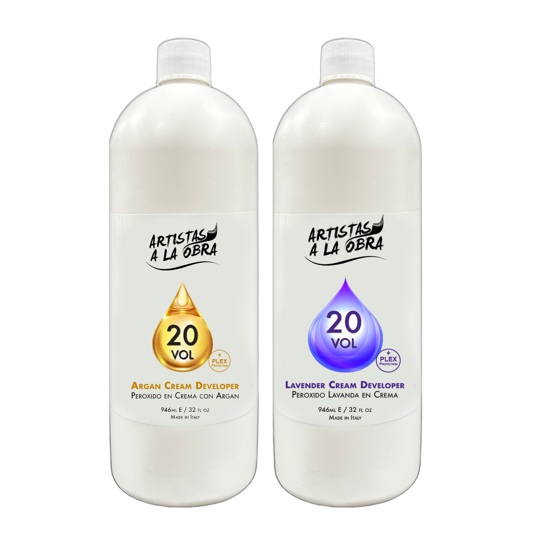 The Cream Developers come in two different options, with or without pigment. The Lavender Cream Developers contain a small combination of blue and violet pigments which creates a lavender color in the formula, this color helps control warm tones during coloring or lightening process. This premium developer guarantees color stability on hair and avoids changes of colours during the aplication. The argan oils, the concentration of fatty acids and vitamin E provide hair with protection to the hair fibers during the chemical process and help maintain the hair healthy and shiny. The Lavender Cream Developer was created to work in harmony with Artistas a la Obra products, however, it can be used with other color and lightener brands.